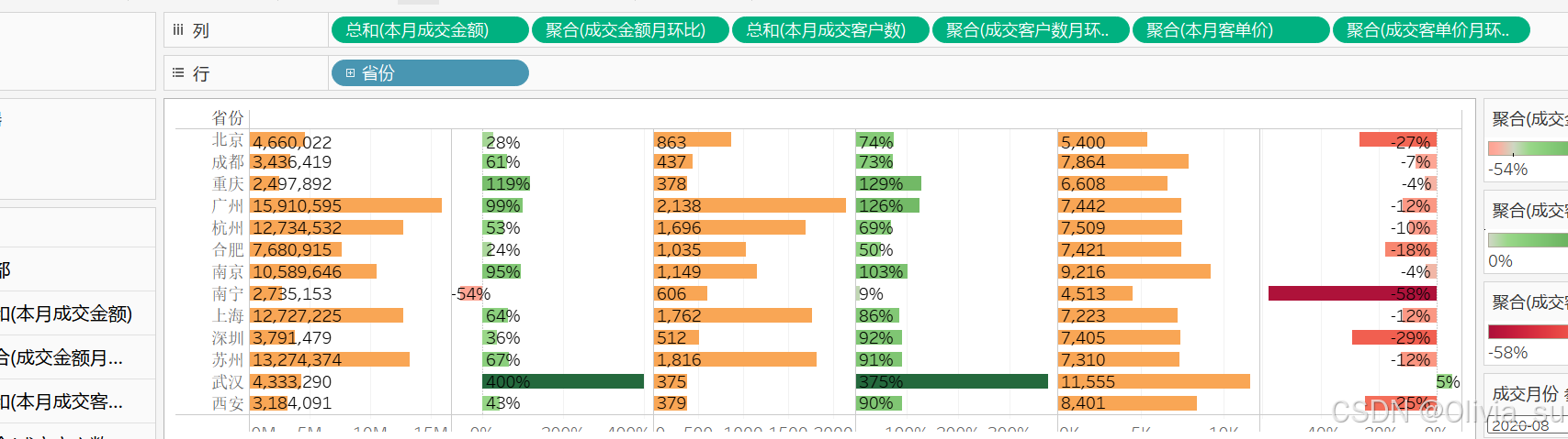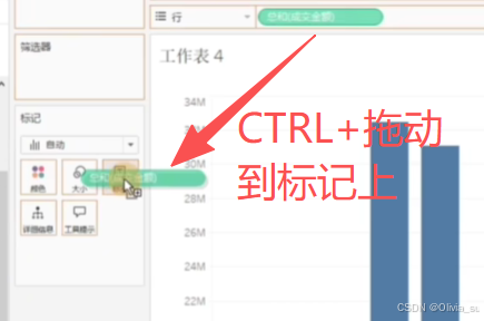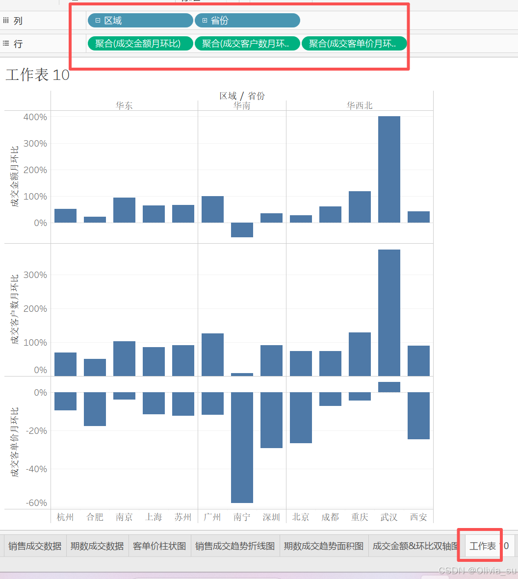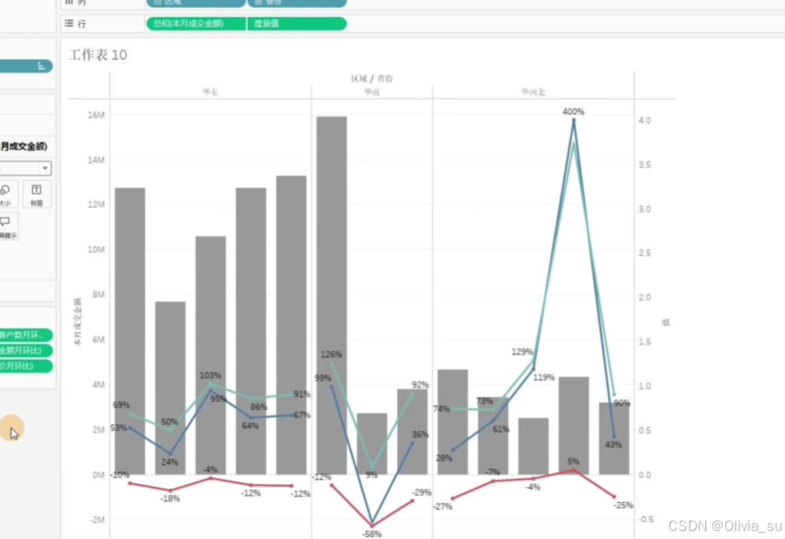 补充:在此基础上,行中再添加成交金额胶囊,右键双轴,仍然可以组合,