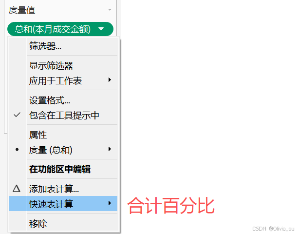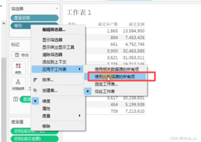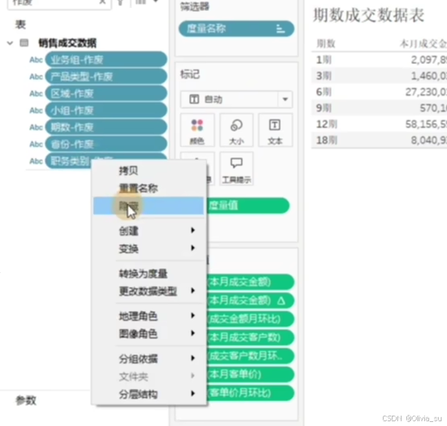 为了维度不发生变化,需要移除筛选器中的本月成交金额