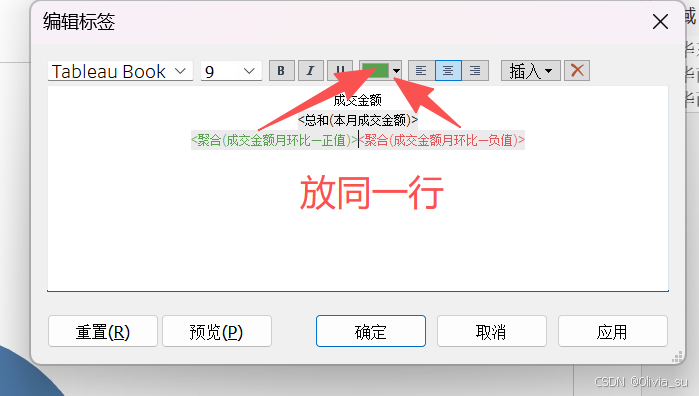 ①移出标记卡里的月环比字段;设置正负值
