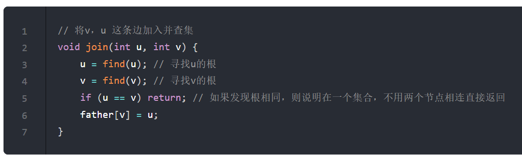 // 合并:将v的根节点指向u的根节点(统一集合)