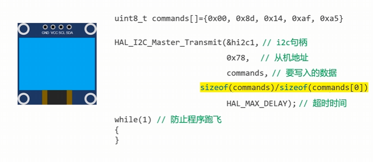 传入数组长度(如sizeof(oled_init_cmd)) |