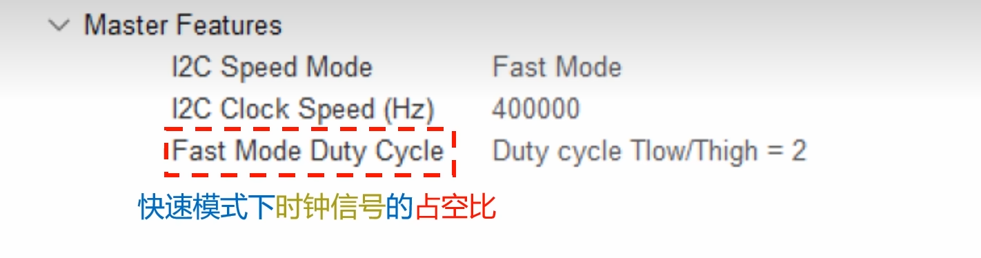 当STM32当作主机时,设置Master Features(主机参数,更常用),如下图所示:
