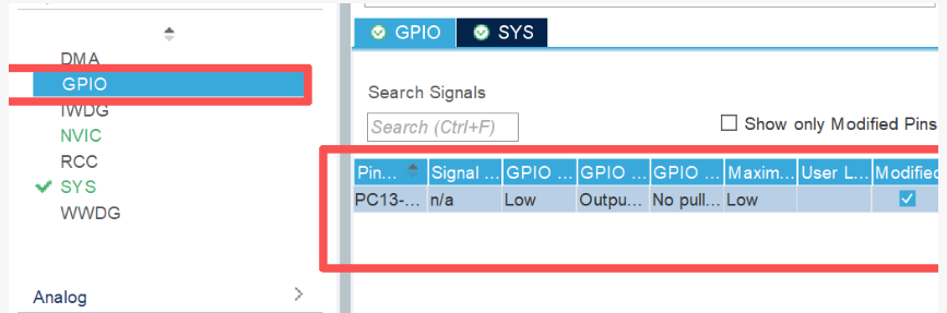 并在右侧芯片图中点击PC13设置为GPIO_Output"