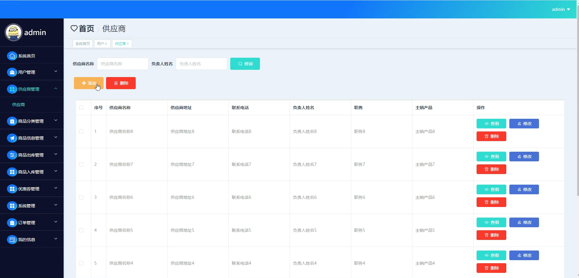 供应商管理:供应商增删改查