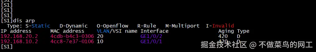 交换机查看ARP表项