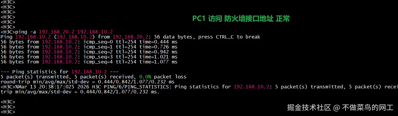 - 交换机:创建 VLAN 10 和 VLAN 20,分别连接防火期与终端设备。