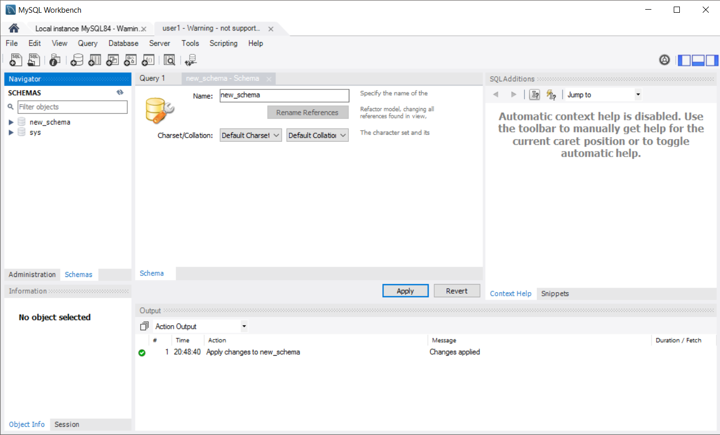 点击Apply,切换到Schemas选项卡查看新建的数据库。