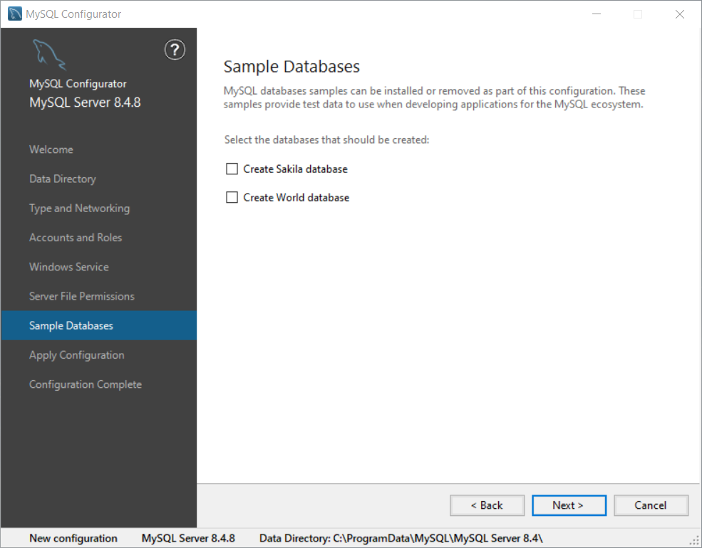 点击 Next,最后Finish完成MySQL Server的初始化配置。
