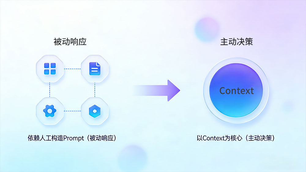 Agent技术的核心演进,本质是决策依据的迭代------从依赖人工构造Prompt的被动响应,进化为以Context为核心的主动决策体系。这一转变重构了Agent架构,使其突破指令依赖,具备自主处理复杂任务的能力。本文将界定核心概念,梳理架构演进脉络,拆解核心技术与逻辑,为理解Agent技术本质提供框架性视角。