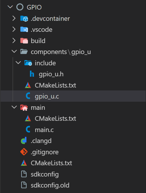 我创建了一个gpio_u的组件,工程结构如图: