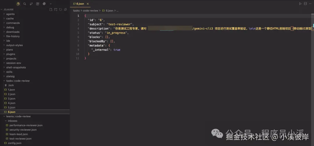 - teams/{code-review}/inboxes :所有队友的角色职责定义、消息通信记录