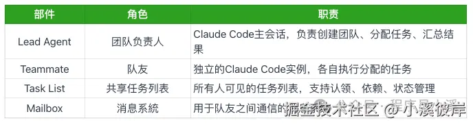 用一句话理解就是: Agent Teams = 一个Lead(团队负责人)+ 多个Teammate(队友),各自独立工作又互相通信,共同完成复杂任务