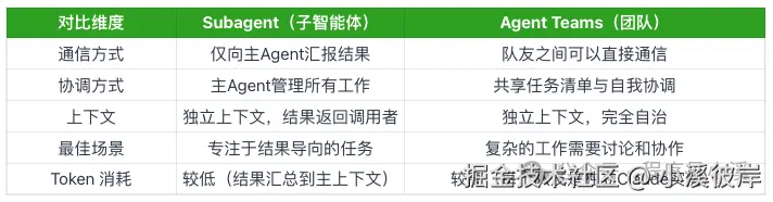 之前了解过Subagents的小伙伴可能要有疑问了,那Agent Teams和Subagents是什么关系,又有什么区别?官方给出的解释是:Agent Teams和Subagents都支持并行处理任务,但它们的运行方式不同。选择哪种方案取决于你的工作人员是否需要相互沟通: