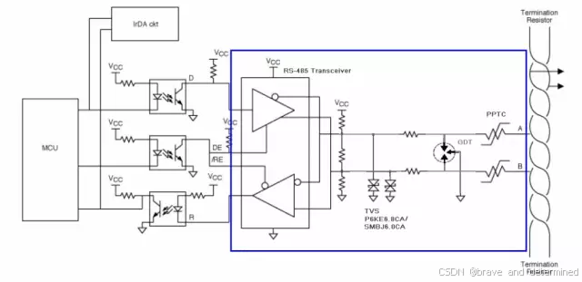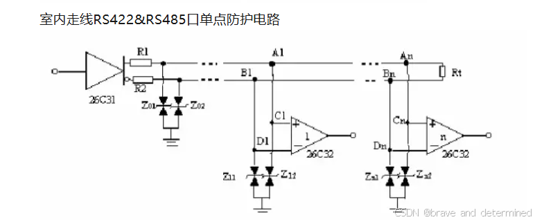 由于 RS-485 和 RS-422 均采用差分传输体制,其防护设计逻辑高度一致,主要根据布线环境(室内或室外)进行区分设计。