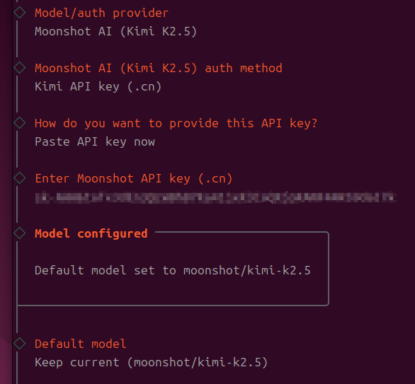 模型选择:根据需求选择AI模型(如"Moonshot AI (Kimi K2.5)"),输入对应的API Key;