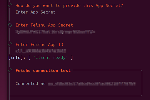4.1在虚拟机中进行到输入app id和app secret后虚拟机将会自动发起测试链接,发起后可以选择长连接