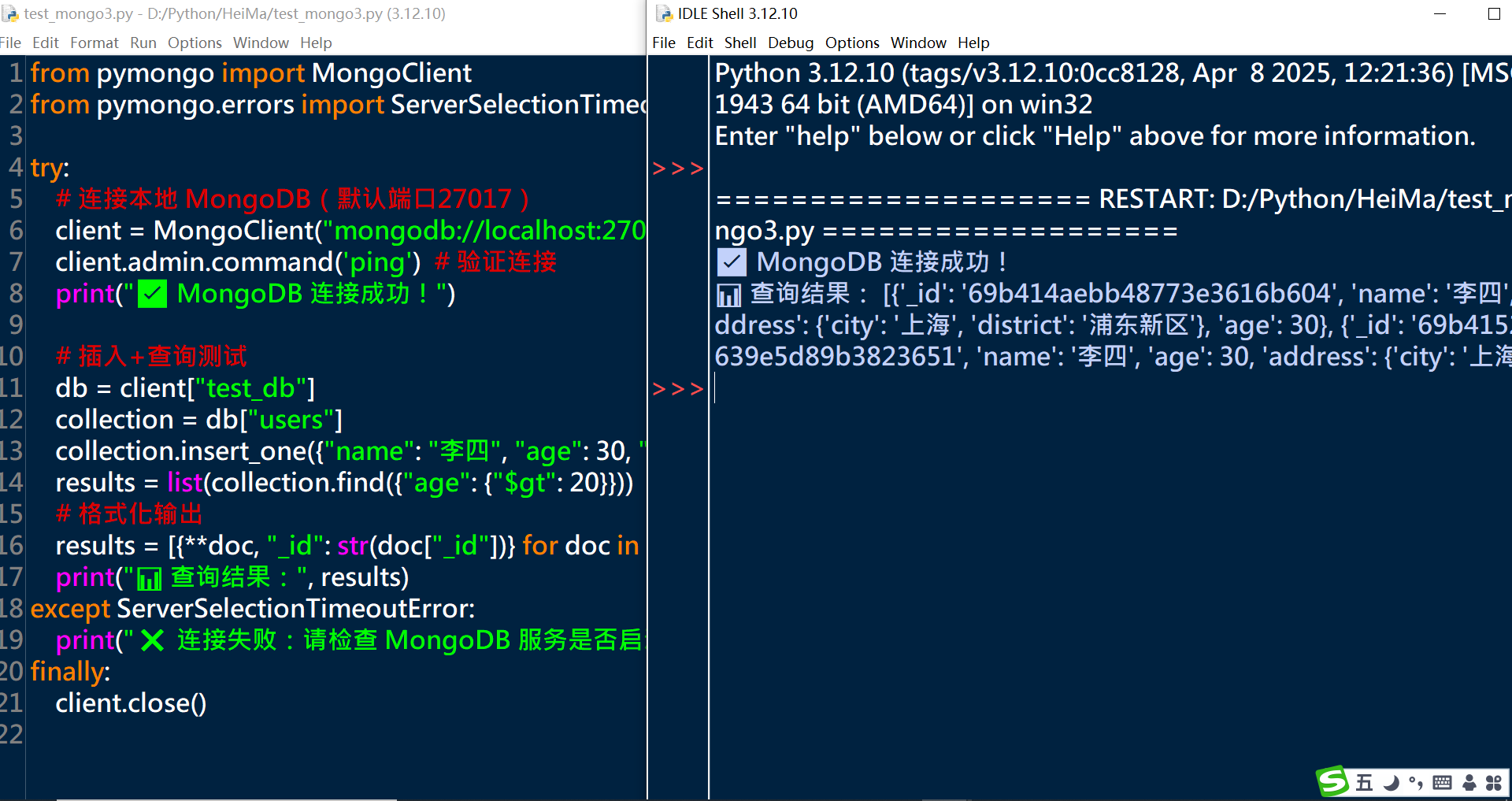 核心工具是 print_mongo_data 函数,可复用在所有集合的查询结果展示;