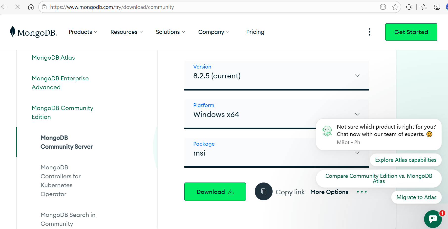官方下载地址:https://www.mongodb.com/try/download/community