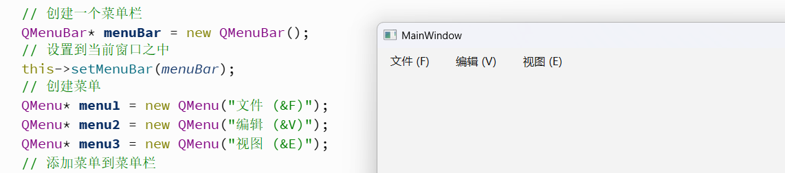 - 如果 QMenuBar 不存在,就先创建一个新的,再返回。