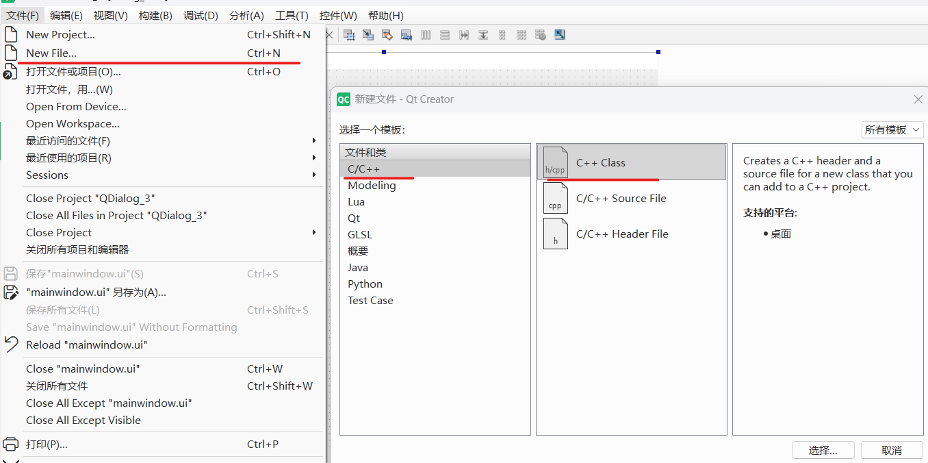在实际开发中,往往不是直接在创建项目时继承自QDialog,而是在代码中,创建额外的类,让额外的类继承自QDialog。