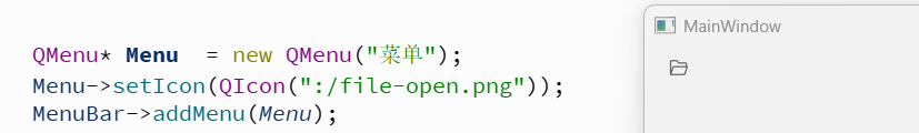 如果给QMenu设置图标,当前QMenu是长在QMenuBar上的,此时文本就不显示,图标覆盖了文本。