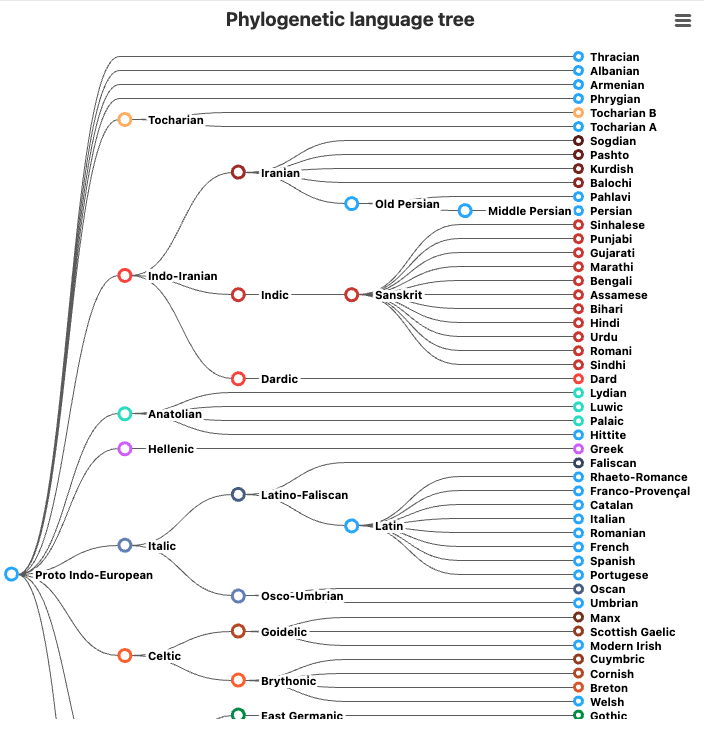 在下面的示例中,我们建立了典型的分类树状图。x 轴以百万年前为单位,间接表示项目之间在时间上的相似性,即自上次共同祖先以来的时间。