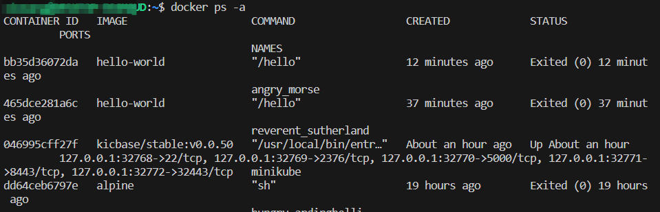 docker ps -a