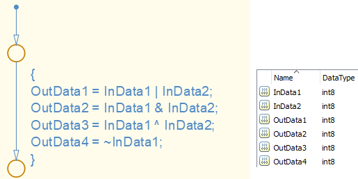 - 当 [Chart] 参数 {Action Language} 设为 "C" 时,运算符 &"|""^""~" 仅允许用于位运算,禁止用于逻辑运算。