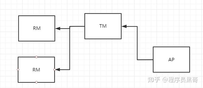 - TM:事务管理器,负责协调和管理事务,提供给AP编程接口以及管理资源管理器。事务管理器控制着全局事务,管理事务的生命周期,并且协调资源。