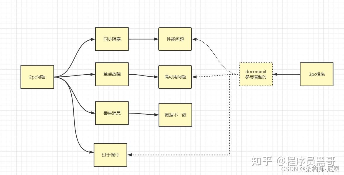 - 两阶段提交协议:XA用于在全局事务中协调多个资源的机制。TM和RM之间采取两阶段提交的方案来解决一致性问题。两节点提交需要一个协调者(TM)来掌控所有参与者(RM)节点的操作结果并且指引这些节点是否需要最终提交。两阶段提交的局限在于协议成本,准备阶段的持久成本,全局事务状态的持久成本,潜在故障点多带来的脆弱性,准备后,提交前的故障引发一系列隔离与恢复难题。