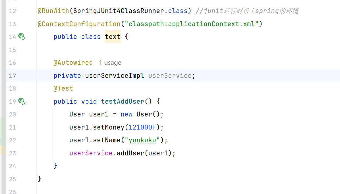 @RunWith(SpringJUnit4ClassRunner.class) //junit运行时带上spring的环境