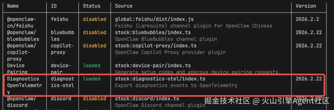 执行完成后,可通过 openclaw plugins list 命令查看插件状态,预期状态为 loaded。