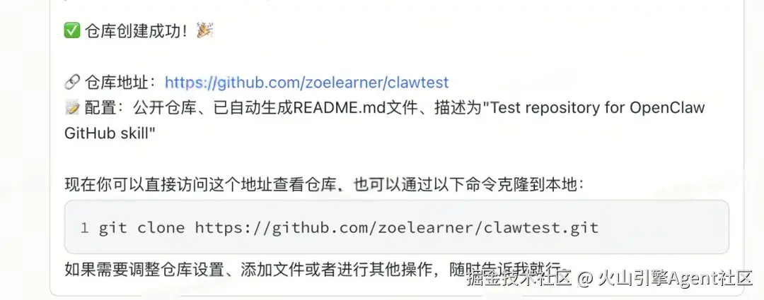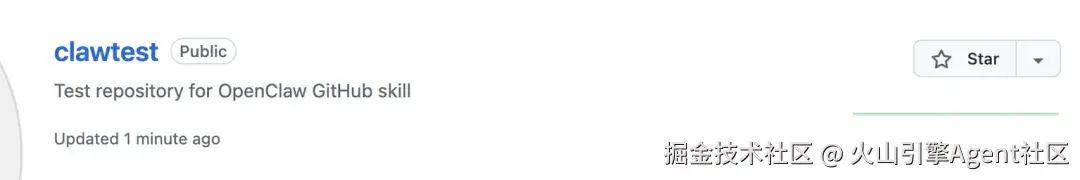 在 github 上检验结果,clawtest repo 已经成功创建: