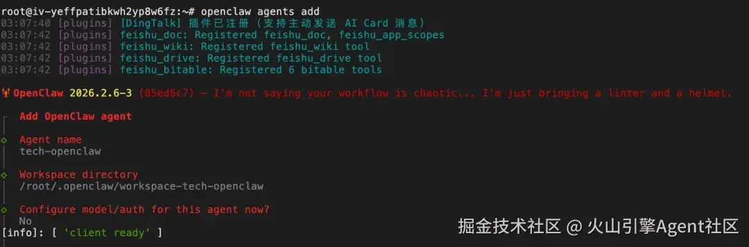 登录到对应的服务器上,通过 OpenClaw 指令添加两个不同的 Agent: