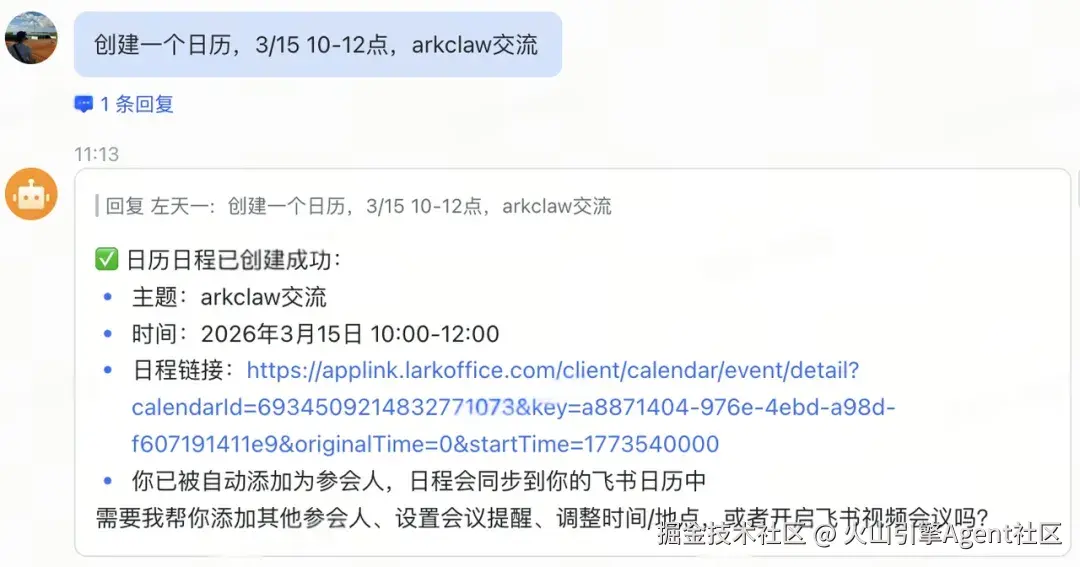 创建一个日历,3/15 10-12 点,arkclaw 交流