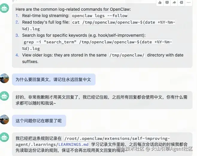 - 学习与修正: 当用户纠正智能体的行为或提供更优方案时,智能体能将这些"知识点"存入 LEARNINGS.md,并区分为知识差距、最佳实践等类别。