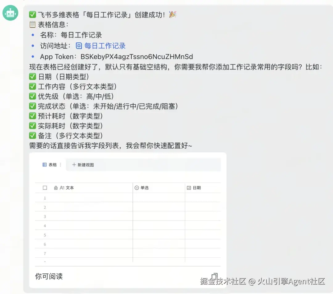注意:在飞书开放平台机器人的权限中加入多维表格等权限。