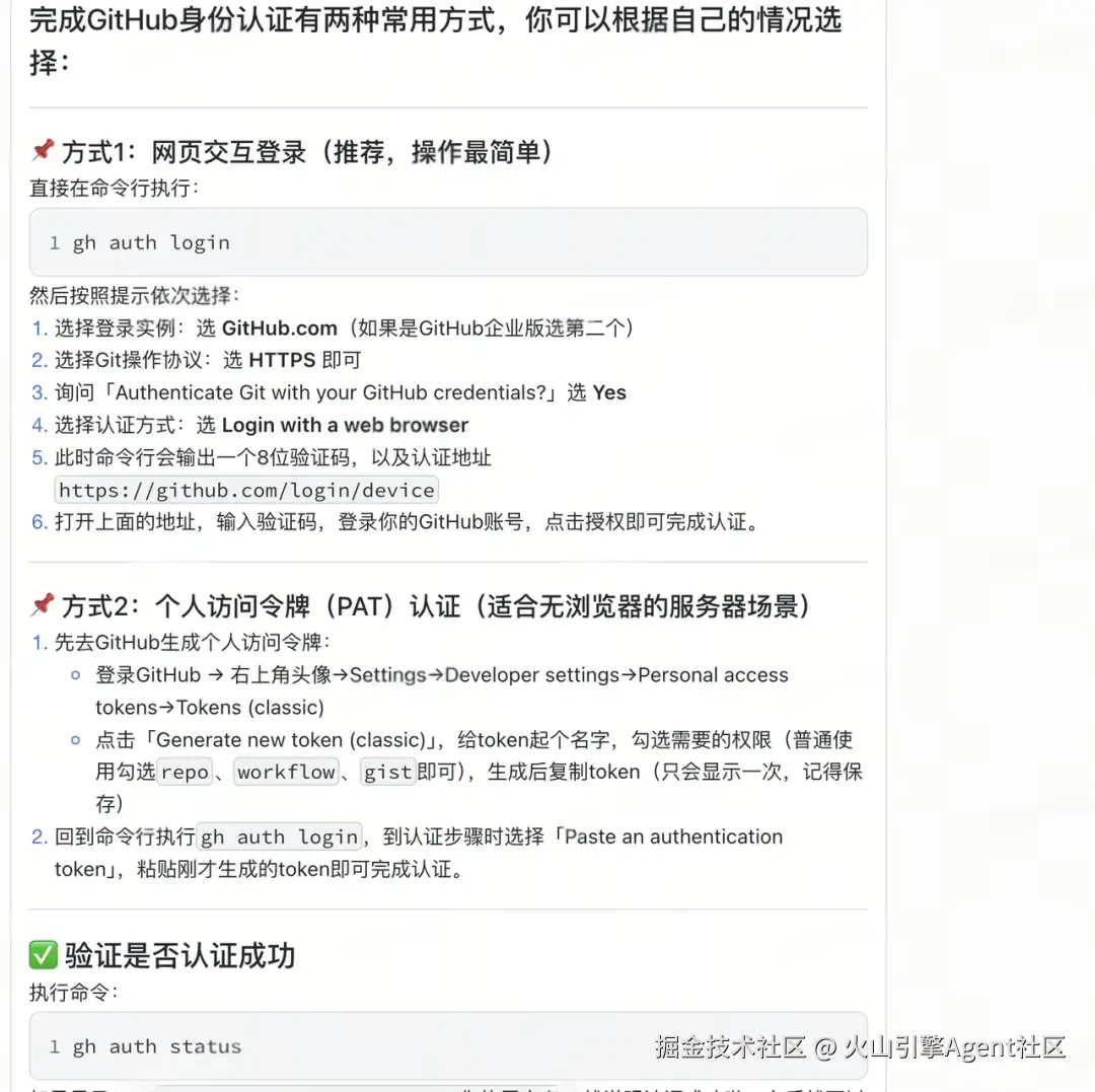 - 结构化输出: 所有 gh 命令都支持 --json 格式输出,并可通过 --jq 进行过滤,这使得 AI 能够轻松解析和利用返回的数据。