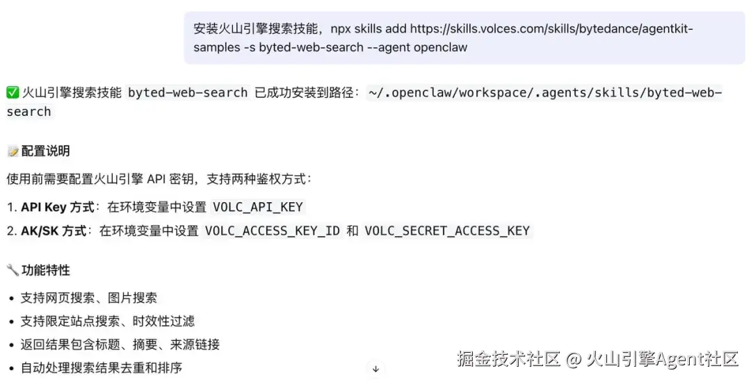 - 结果呈现: 向用户清晰地展示找到的技能、其功能简介、安装命令以及详情页链接。
