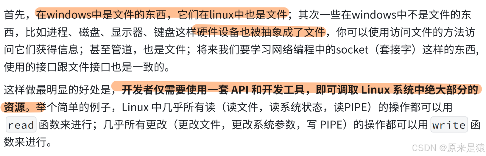 骗过进程,相当于骗过用户 , 让进程以为 "一切皆文件" ,屏蔽底层的差异。