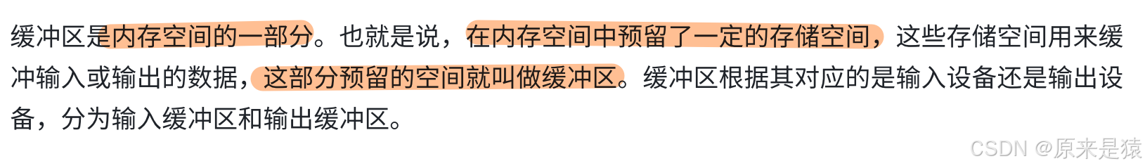 缓冲区是内存中预留的一块空间,用于缓存 IO 数据,分为: