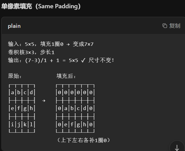 目的 在图像边缘补零(或其他值),解决卷积带来的两个问题:缺陷1:图像尺寸缩小 每卷积一次,图像就变小! 深层网络卷积多次 → 图像消失 ; 缺陷2:边缘像素被"重复计算",结果:边缘信息被"浪费",中心信息过度使用