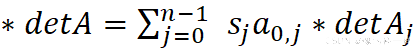 是位于第0行和第j列的元素,Aj是把第0行和第j列从矩阵A中删除后获得的n-1阶方阵。