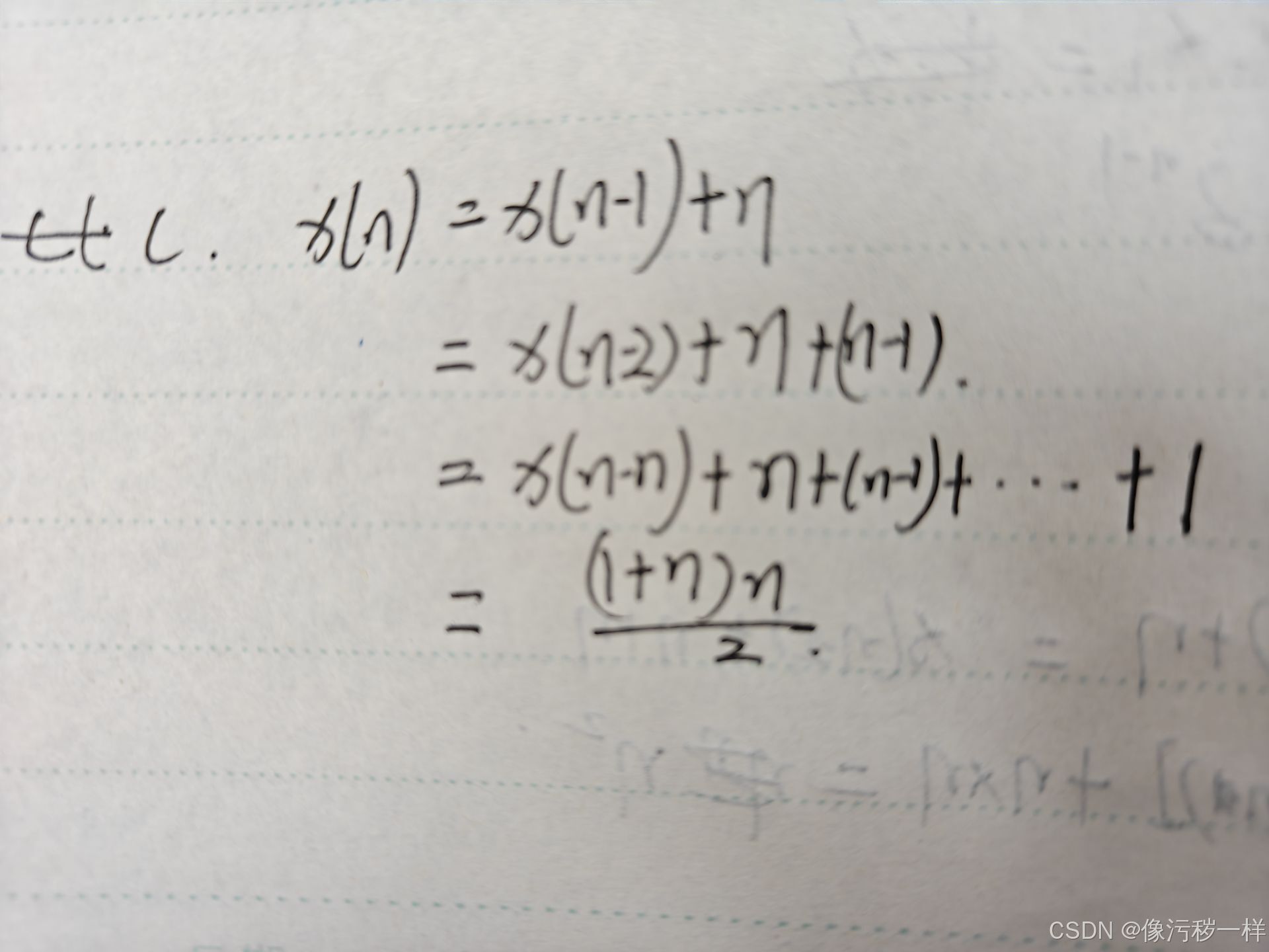 c. x(n)=x(n-1)+n, 其中n>0, x(0)=0