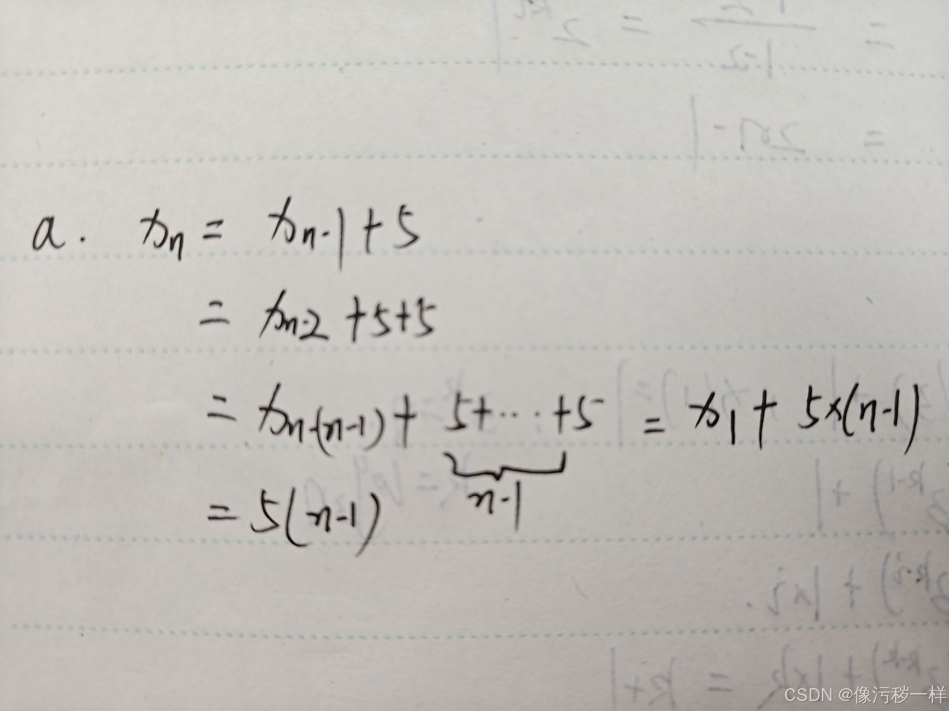a. x(n)=x(n-1)+5, 其中n>1, x(1)=0:
