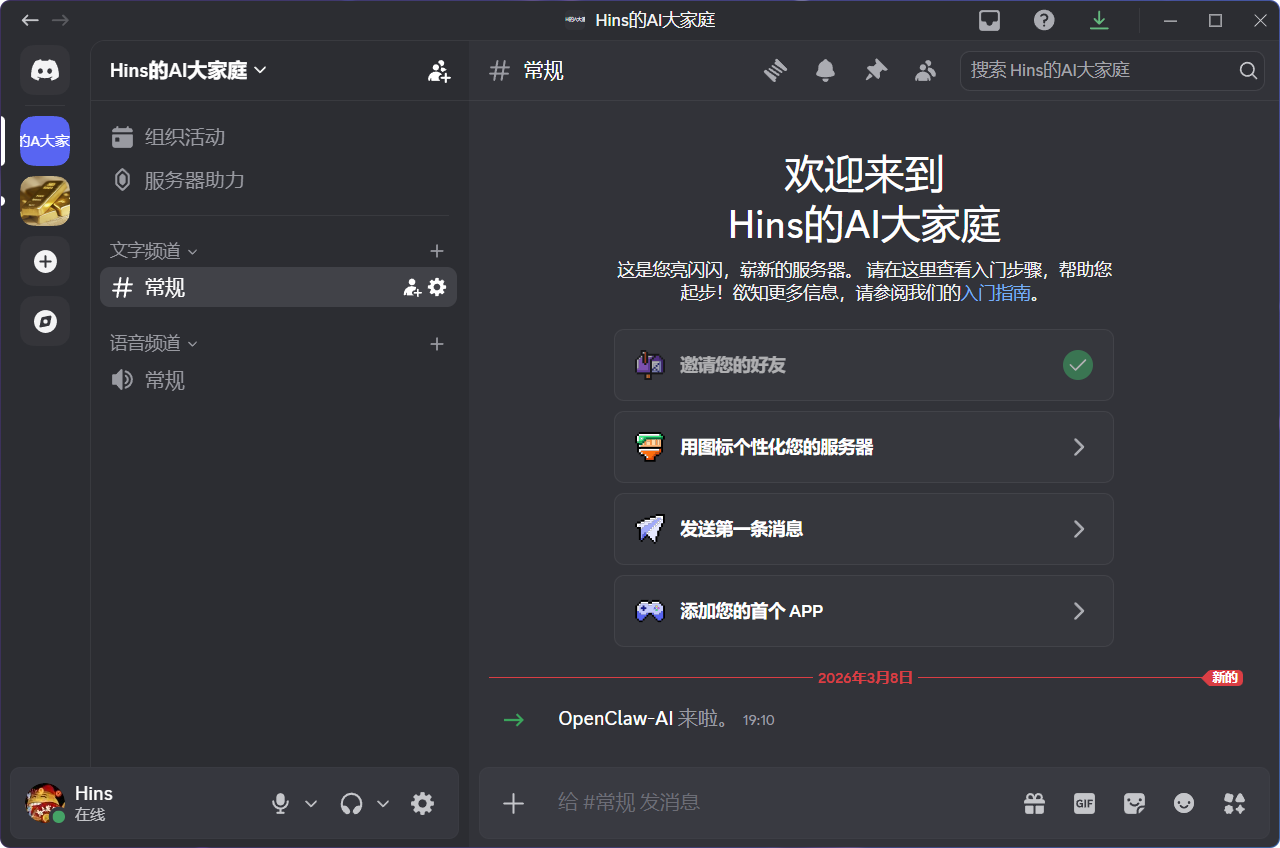 🕒 2. 创建Discord服务器(可选)