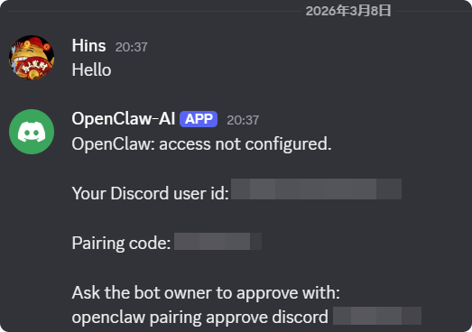 找到这个 Bot ,私信它任意内容,进入配对模式