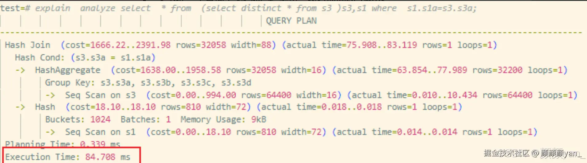 | 未下推 | 子查询全表扫描 + 去重,再与 s1 JOIN | ~84ms |
