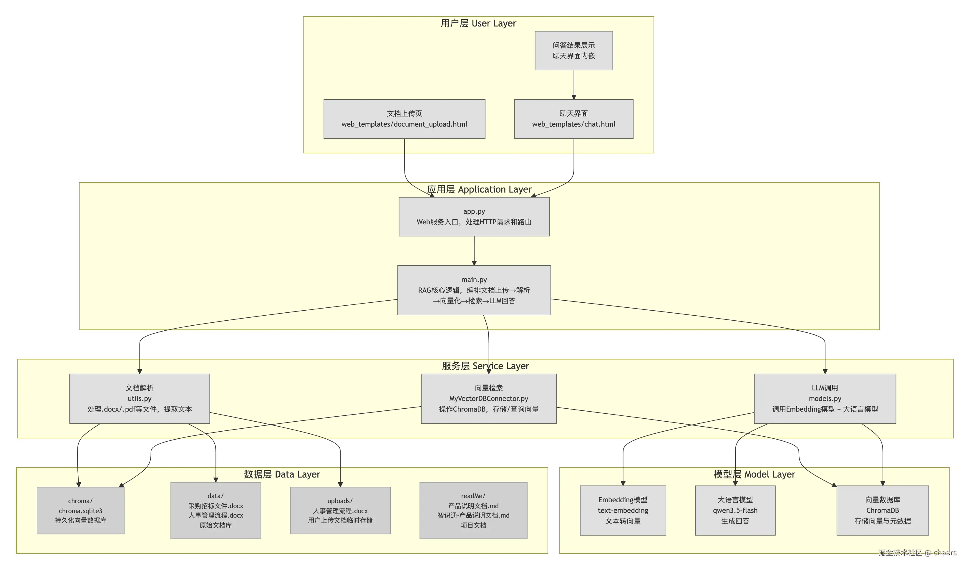 - 向量化存储:使用先进的Embedding技术将文档内容转化为向量,存储于ChromaDB向量数据库