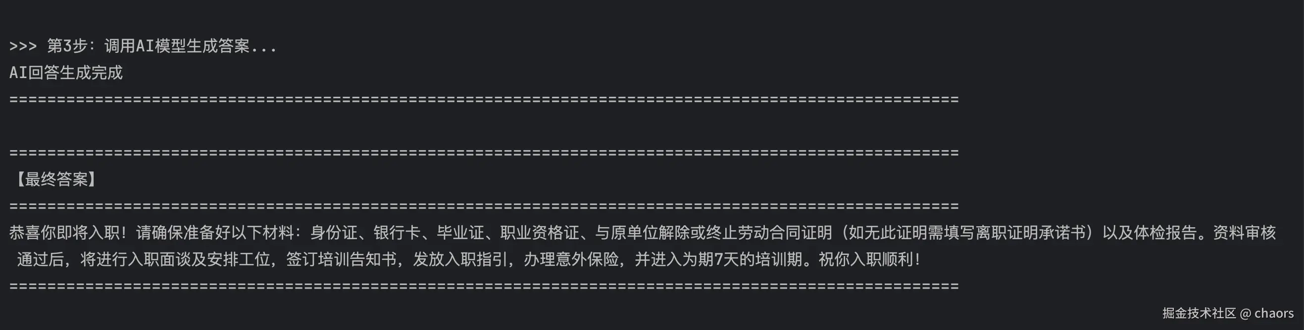 jsonify({ 'response': response, # AI的回答 'search_results': search_results # 检索到的相关文档片段 })